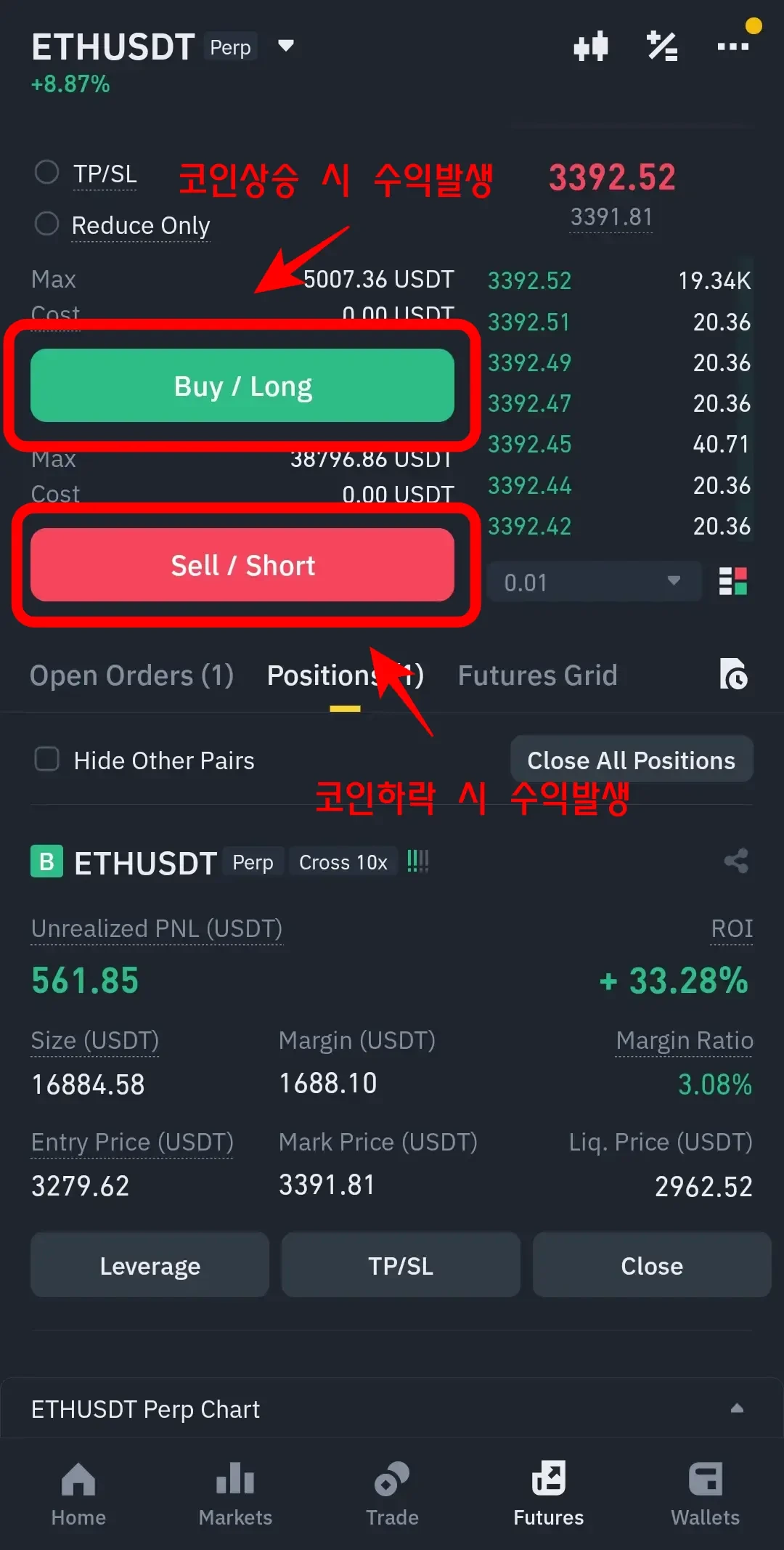 - 가격이 예상대로 하락하면 수익을 실현해보세요!